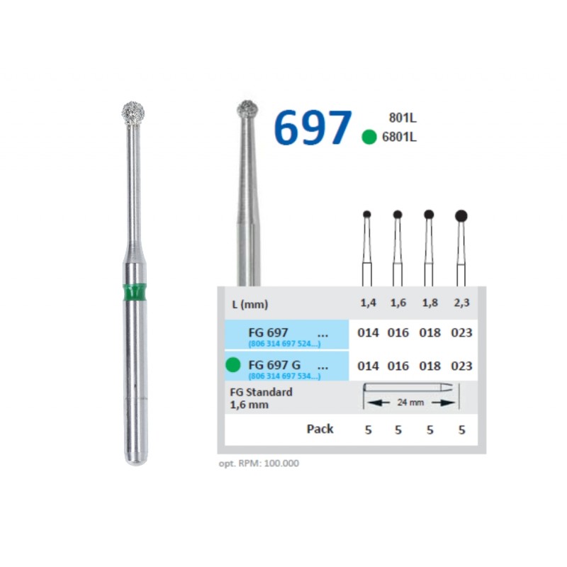 Etichete: Freze diamantate, sferice cu gatul lung, forma 697 HORICO